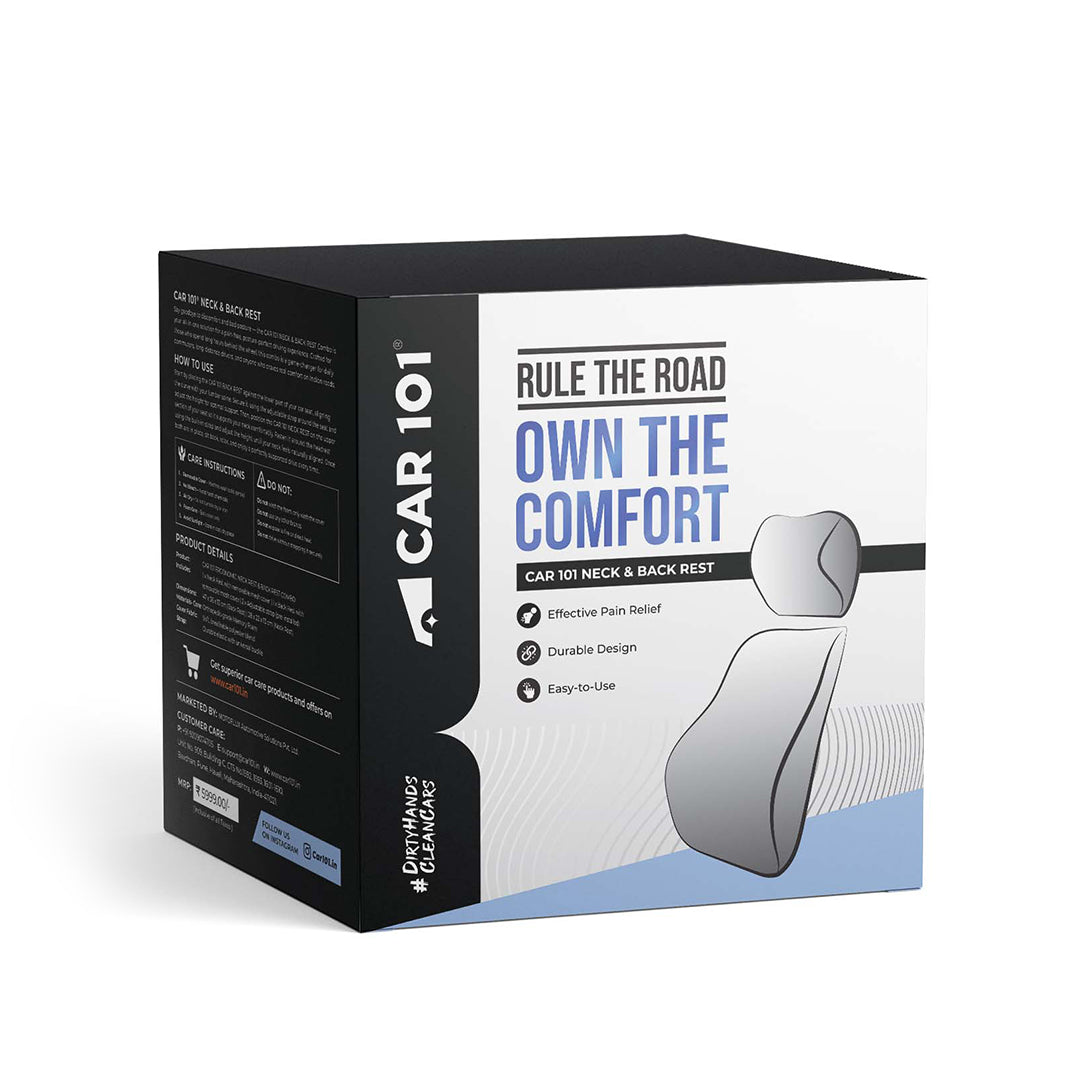 The CAR101 Neck and Back Rest Combo is crafted with premium memory foam that molds to your body, giving you customized support exactly where you need it. The neck pillow cradles your cervical spine to prevent stiffness, while the back rest supports your lumbar region to ease pressure and maintain healthy posture. Together, they reduce fatigue, improve comfort, and protect your spine during long drives or extended sitting sessions.