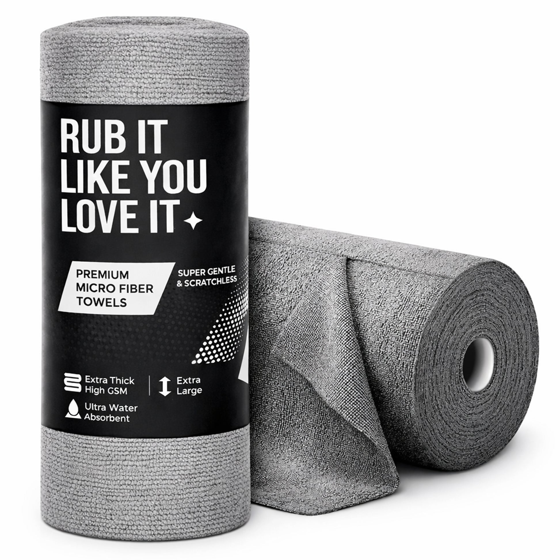 Make cleaning easier with CAR 101®️ Roll Microfiber Towel, Per roll you get 20 Units of washable & Reusable 220 GSM microfibre towels, designed for everyday use across mirrors, glass, screens, kitchens, and more. This tear-away roll gives you fresh, lint-free towels for cleaning, buffing, and dusting anytime. Soft yet effective, it lifts dust and residue without scratching. Each towel is reusable, can be washed multiple times in a machine or bucket, and stays gentle and absorbent over time. Easy, Convenient, Space saving & affordable microfibre towel roll.